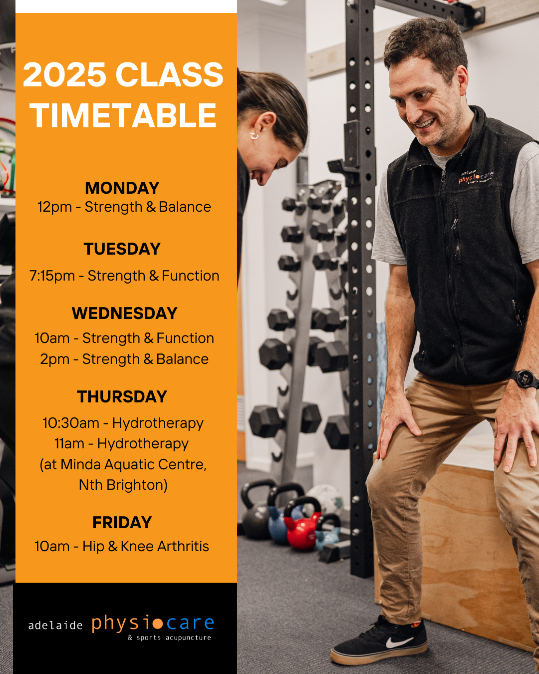 Call the clinic on 8297 6533 or book online to organise an appointment for a pre-class assessment with any physio.